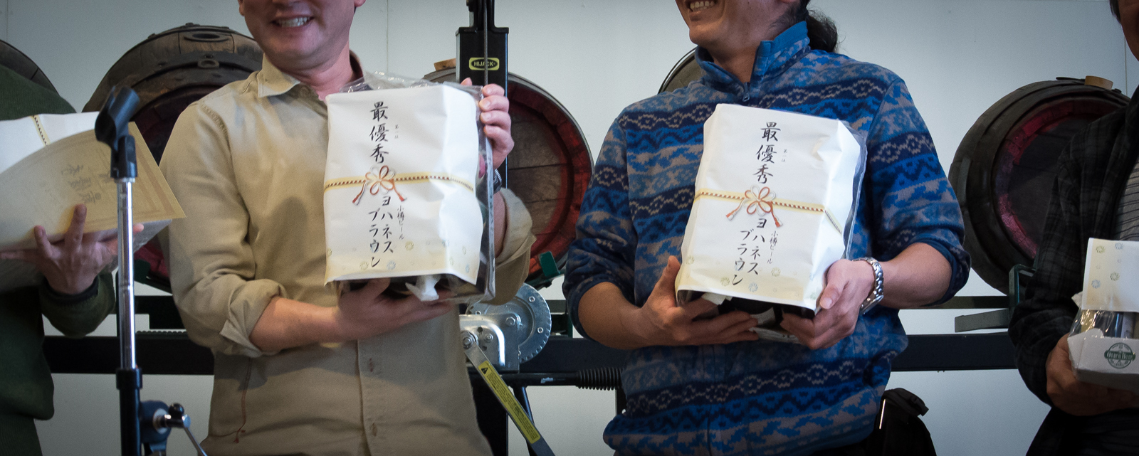 投稿日: 10 4月, 201310 4月, 2013醸造体験 結果発表 ご参加頂いた皆様、お疲れ様でした。ありがとうございます。 今年も熱い戦いでした!! ビールコンテスト結果 最優秀 No.45「二年連続樽からの直飲みしたおバカさんとその仲間たちのビール」(藤井さん、其田さん、中田さん、朝倉さん) 優秀 No.22「小笠醸造所」(奥田さん、本田さん、片岡さん、加藤さん、土橋さん、今井さん) 第三位 No.16「花見だワッショイ!!」(三春さん、小俣さん、鎌田さん、保科さん) ヨハネス・ブラウン賞 No.6「咲子の62の祝い酒」 No.12「のび のビール夕」 No.24「幸せの黄色いエプロン」 No.39「丸亀醸造所」 No.44「エンジェル・ブラウン」 No.15「山木のビール」 No.42「AKB31」 がんばったで賞 No.1「おたるビール No1」 No.4「淳子組」 No.20「♡プリンセスビール♡♡♡」 No.23「1934CLUB 酔いどれ天使」 No.32「おひげのマイスターブルワリー」 No.37「ノイズビール」 No.41「ハイビスカス・ホワピリ」