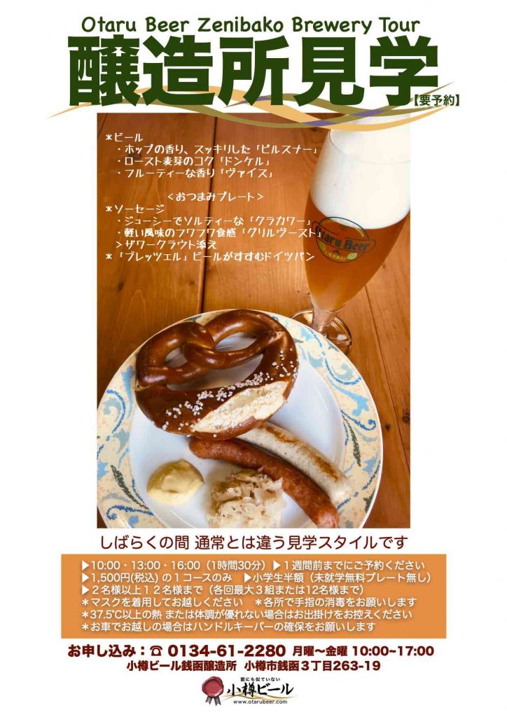 *小樽ビールは醸造所が2カ所ございます。下のポスターは「小樽ビール銭函醸造所」の見学です。お間違いのないようご利用ください。