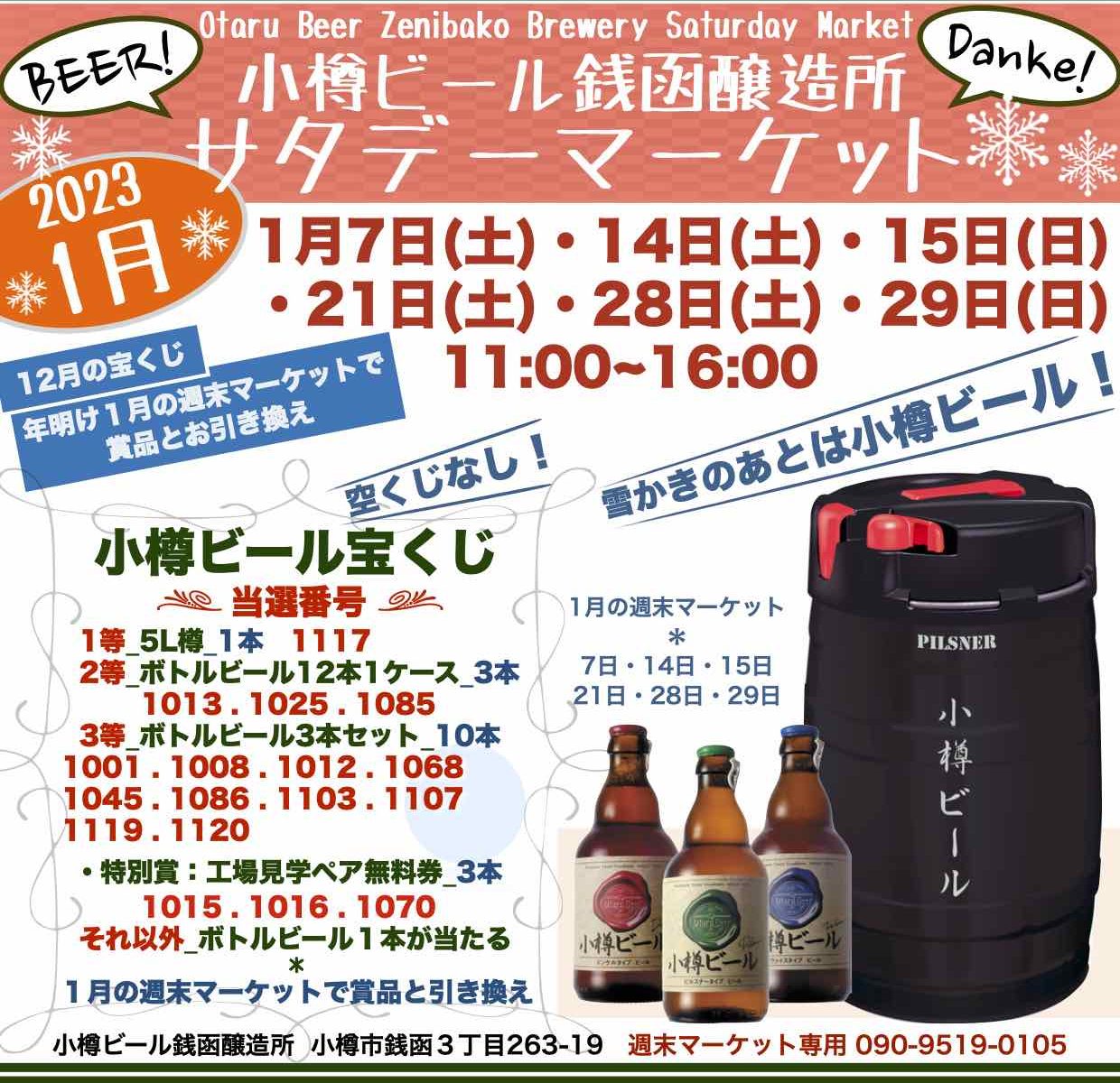 投稿日: 19 1月, 202319 1月, 2023 投稿者: 佐藤 祐正銭函醸造所 週末マーケット 小樽ビール宝くじの引き換えは1月29日(日)が最終です。引き換えだけでも もちろん結構ですので ぜひお越しください。