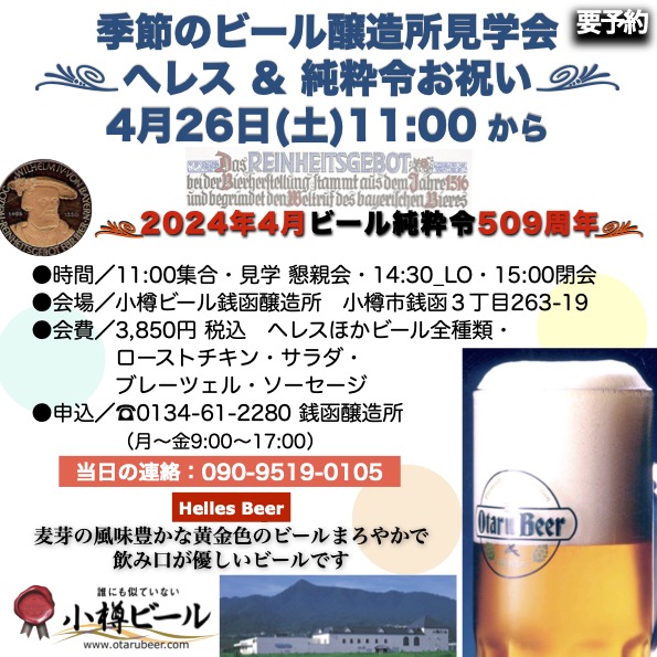 投稿日: 7 4月, 20257 4月, 2025 投稿者: 佐藤 祐正銭函醸造所 季節ビール見学会 麦芽の風味が高い「ヘレス」ファンの方は多くいらっしゃいます。春のイメージと重なっている方もいらっしゃるようです。ぜひ「ヘレス」をご堪能ください。